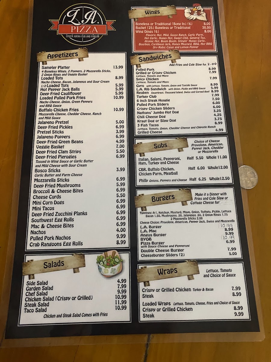 Welcome to L a Pizza, where delicious bites meet a welcoming atmosphere! Nestled on 25 W Main St, Adena, OH, this inviting eatery has earned rave reviews from locals for its diverse menu and friendly service. Customers are particularly enamored with the mouthwatering Italian sub, praised as the "best sub" by Kaylee Ferguson, while the extensive selection of pizzas has garnered high accolades for quality and taste.
